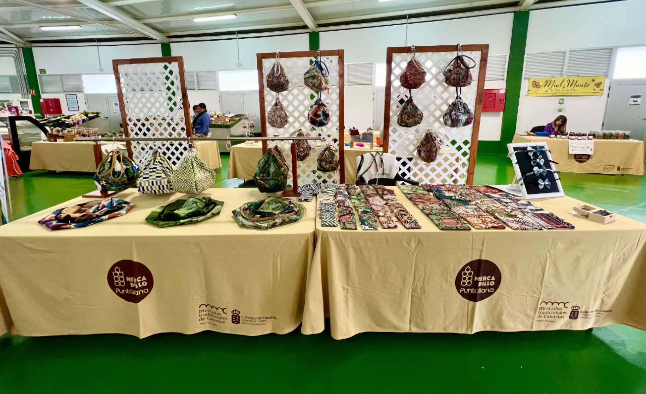 El mercado se celebra todos los sábados y domingos de 9:00 a 14:00 horas en el centro del pueblo de Puntallana. Además de fruta fresca, verduras, miel y vino, también presentan sus productos artesanos y artesanas locales, entre los que se encuentran los bolsos de diseño hechos a mano de Maru-La Palma.